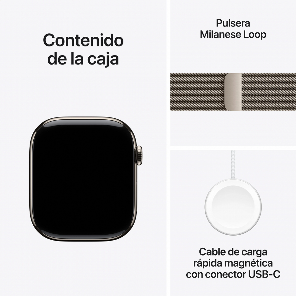 Disfruta del Apple Watch Series 10 con su impresionante pantalla OLED de 46 mm, conectividad 4G, y sus avanzadas prestaciones de fitness y salud en un diseño de titanio.