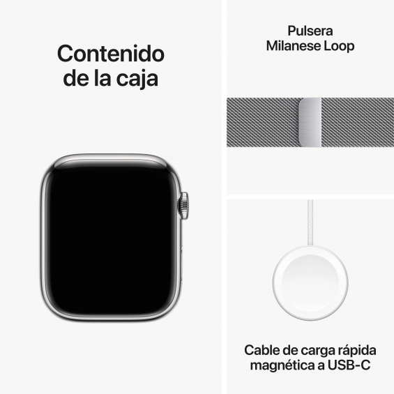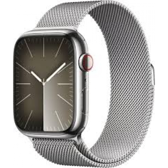 El Apple Watch Series 9 combina diseño elegante en acero inoxidable con funcionalidades avanzadas como conectividad celular y resistencia al agua.