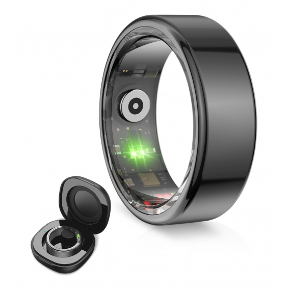 - Anillo inteligente rastreador de actividad Alrededor Negro - Monitor de frecuencia cardíaca Minutos activos Calorías quemadas Distancia recorrida Podómetro Horas de sueño Calidad del sueño Metas personales Seguimiento de ejercicio - Bluetooth - 15 mAh Duración de la batería: 3 día(s)
