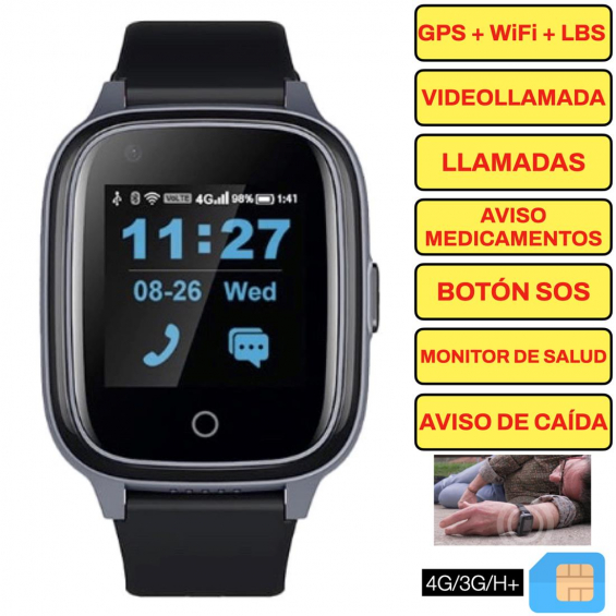 Reloj con localizador GPS para mantener protegidos a tus seres queridos.El reloj pulsera para personas mayores cuenta con la última tecnología 4G, lo que permite una localización instantánea en cualquier momento y lugar.RELOJ DE EMERGENCIA CON AVISO DE CAÍDAEste reloj está diseñado para brindar seguridad en todo momento. En caso de detectar un movimiento brusco, el reloj generará una alerta telefónica, asegurando que siempre estés conectado en cualquier circunstancia.MONITORIZA SU SALUDEl smartwatch para mayores es capaz de proporcionar información vital sobre la salud en tiempo real. Puedes conocer la presión arterial, el nivel de oxígeno en sangre y recibir alertas en caso de caída, lo que te brinda tranquilidad y la posibilidad de actuar rápidamente en caso de emergencia.RECORDATORIO DE MEDICAMENTOSEste reloj te permite establecer recordatorios para la toma de medicamentos, asegurando que nunca olvides un momento importante para tu salud.RESISTENTE AL AGUA IP65El reloj está diseñado para resistir pequeñas salpicaduras, como el lavado de manos, lo que garantiza su durabilidad y funcionalidad en diversas situaciones.CONFIANZA SAVEFAMILYEste producto es ofrecido por SAVEFAMILY, una reconocida empresa europea que se caracteriza por su excelente atención al cliente, servicio técnico propio y un servicio post-venta confiable.¡Localiza a tus seres queridos en cualquier lugar con nuestro reloj pulsera para personas mayores! Con tecnología 4G, ofrece una localización instantánea en todo momento. ¡No te preocupes por su seguridad, nuestro reloj de emergencia con aviso de caída te mantendrá conectado en cualquier circunstancia! Además, monitorea su salud en tiempo real, con información vital como presión arterial y nivel de oxígeno en sangre. ¡No olvides tus medicamentos con nuestro recordatorio incorporado! Resistente al agua, duradero y funcional.Ofrecido por SAVEFAMILY, con excelente atención al cliente y servicio post-venta confiable. ¡No pierdas la oportunidad, Stock disponible en las Islas Canarias!